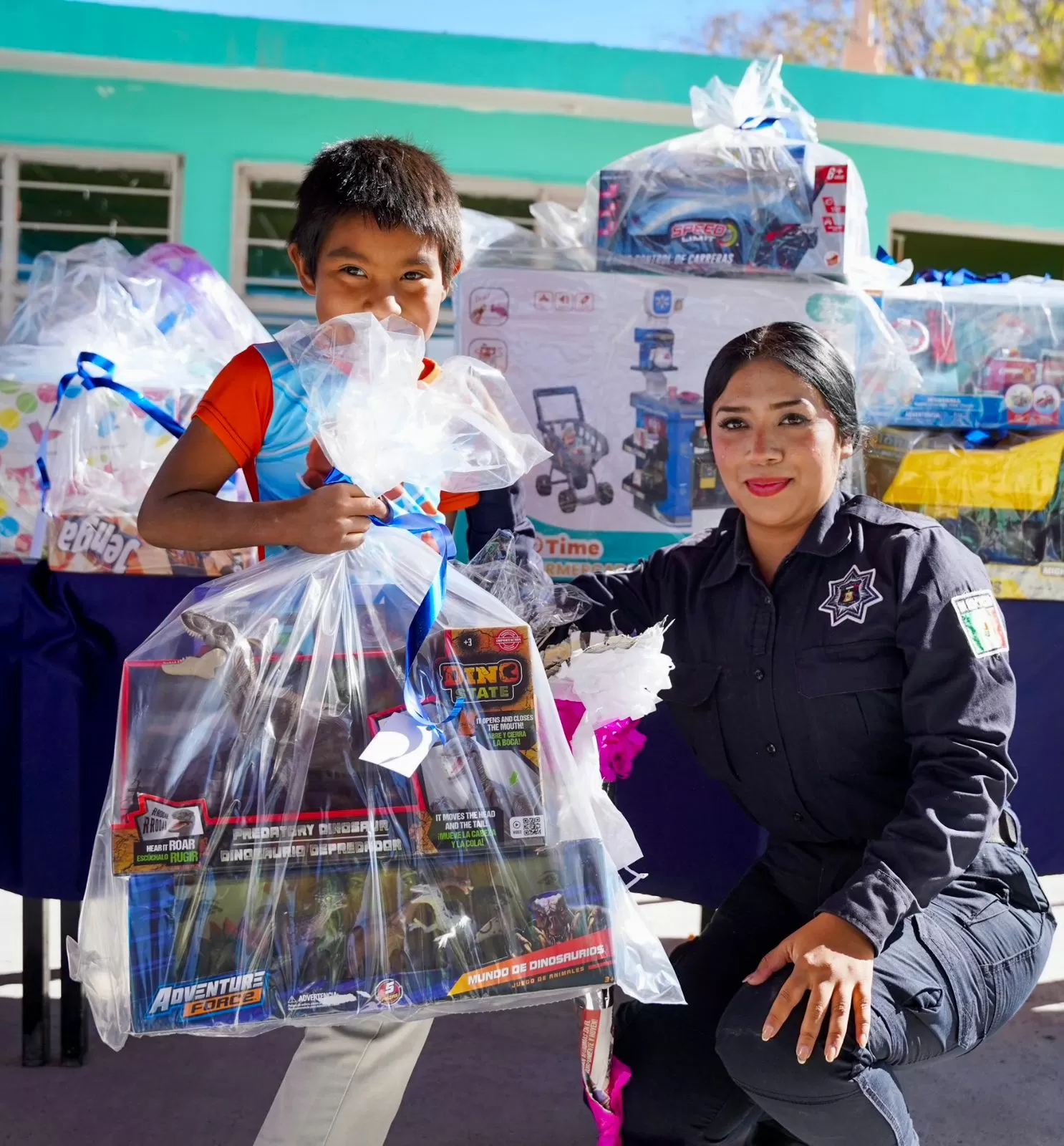 La posada navideña se llevó a cabo en la escuela comunitaria del Consejo Nacional de Fomento Educativo (CONAFE), donde asistieron niñas y niños del preescolar y la primaria. Los oficiales de la policía se encargaron de organizar una serie de actividades divertidas para los pequeños, incluyendo piñatas, dulces, obsequios y un adorable refrigerio.